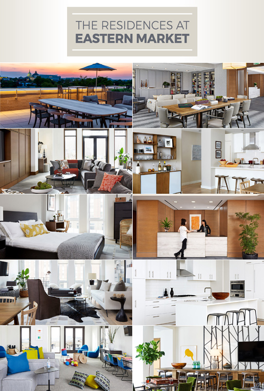 The locals know it. Even the tourists know it. Capitol Hill is one of the most eclectic, charming and sought-after neighborhoods in DC. In the center of it all, The Residences at Eastern Market is a collection of 128 spacious apartment homes that blends the uniqueness of the Hill with the beauty of modern design. Here, the energy of Eastern Market pairs with the quiet retreat of a landscaped courtyard. You’ll find a convenient Trader Joe's on the ground and a show-stopping pool on the roof. Friendly neighbors will become fast friends, and you’ll have elegant spaces to host them. The best of DC and the beauty of good design: a match made only at The Residences at Eastern Market.