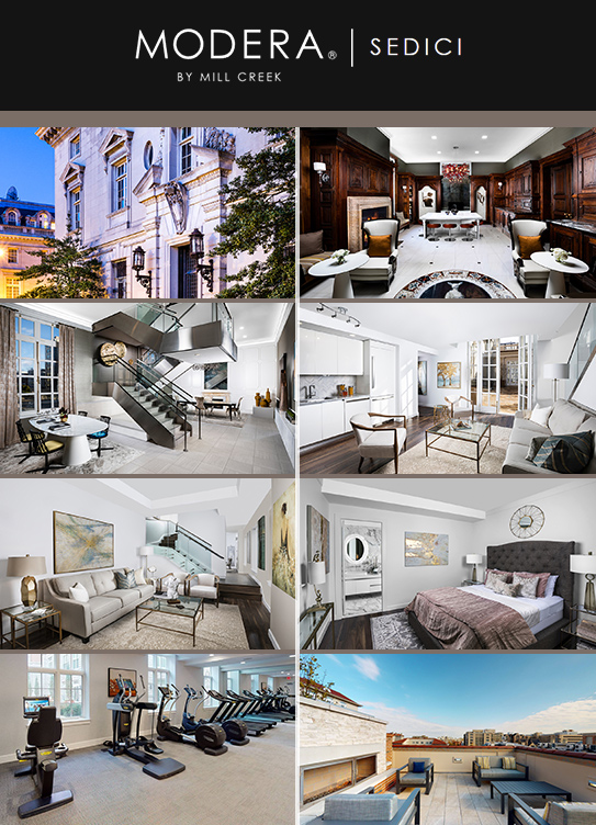 Featuring iconic Neo-Renaissance architecture, Modera Sedici unveils exquisite Northwest apartments, featuring 22 individually customized floor plans with select townhome-style layouts in the original embassy building, in addition to 112 recently constructed residences.