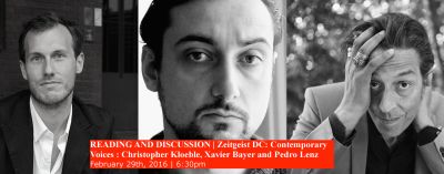 Tickets: Free General Admission! | Please register at: https://www.eventbrite.com/e/zeitgeist-dc-contemporary-voices-christopher-kloeble-xaver-bayer-pedro-lenz-tickets-19966636748