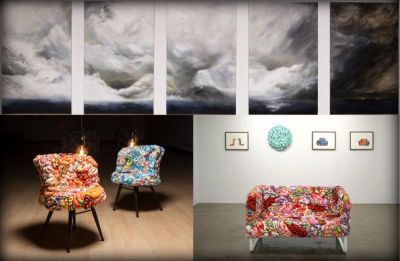 This stunning exhibition of painting and fabric installation works by two rising Korean artists explores the language of emotional discomfort in modern society through dramatic landscapes and tactile furniture art, blurring the line between emotion, dreams, and reality. About the Artists Ji Yoon Hwang captures the dreamlike qualities of natural scenery, summoning viewers into a dark and bleak landscape that arouses fear, anxiety, and delight. In this way, her works stimulate the soul rather than just the eye. Hwang rouses the common conception of an "easy" landscape painting by adding intimidating elements to the formula and transforming the work's feel. The result follows the structure of traditional oriental art, but using Western techniques. Ji Yoon Hwang received her BFA and MFA in Fine Art from the School of Visual Art at Korea National University of Arts, and has participated in numerous exhibitions across Korea. Read more about the artist here. Soyoung Kim imbues her work with contemporary aesthetic characteristics by creatively transforming familiar materials from daily life with simplicity and repetition. The most important factor in her work is the act of sewing. Through this action she creates new value out of an object's original form and identity by disassembling and reconstructing it. The human figures in her work, made of cloth to be both seen and felt, speak to the various concerns, fears, and voices in each of us, and in our modern society. Soyoung Kim received a BFA in painting from Hongik University in Korea and from Meisterschueler at the Academy of Fine Arts in Germany, and completed the doctoral program in painting at Hongik University. She has participated in residencies and art show across Korea. Read more about the artist here.