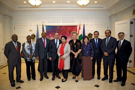 Ambassador Bogyay: Today there are only 37 women ambassadors among the Permanent Representatives (PRs) of the 193 member states of the United Nations. I keep inviting the women ambassadors to share knowledge and exchange views. Part of representing the concept that we would like to see more women in all areas of diplomacy is that we should know and understand each other well so that we can present our case most effectively.