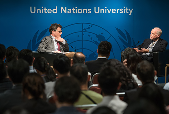 The existence of the United Nations University (UNU), based in Tokyo, is one of the world’s better kept secrets. To be sure, UNU lacks many of the accoutrements of major universities around the world. There are no school colors beyond the blue and white of the United Nations itself, no sports teams, mascots, cheerleaders, or pennants to hang on the wall. There are no residence halls, stadiums, student centers, parents and students touring the campus, and no shopping list of logo imprinted items.