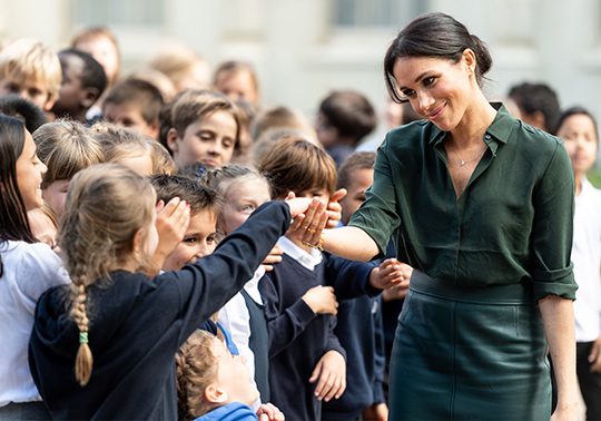 Meghan, Duchess of Sussex, greets local school children in Brighton, U.K.