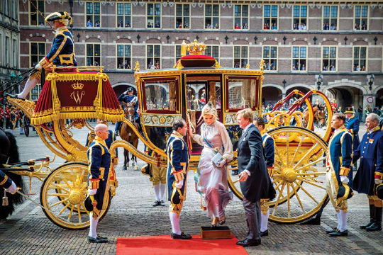 King Willem-Alexander and Queen Maxima of the Netherlands arrive at the Binnenhof for the annual opening of the Parliamental year Prinsjesdag on September 18, 2018 in The Hague, Netherlands.