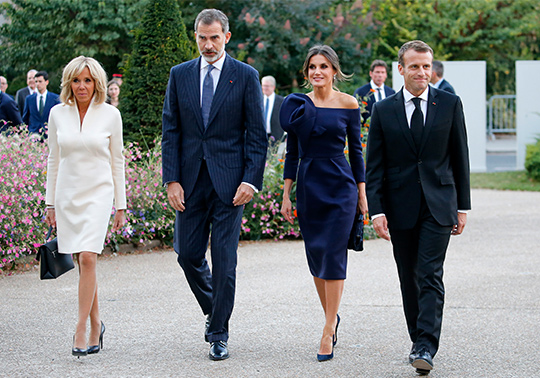 King Felipe of Spain, Queen Letizia of Spain, French President Emmanuel Macron and his wife Brigitte Macron arrive at the Grand Palais to visit the Miro exhibition on October 05, 2018 in Paris, France. The Spanish royal couple visited Paris to attend the 'Miro, La couleur des reves' (in english: This is the color of my dreams) exhibition and participate in an offcial dinner with Emmanuel Macron and his wife Brigitte at the Elysee Presidential Palace.