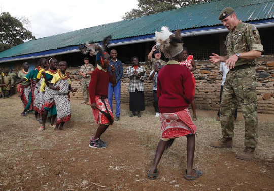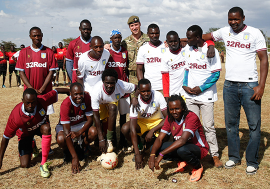 Prince William poses for a photograph with members of a community soccer team during his visit Ol Maiso primary school in Laikipia on September 30, 2018.