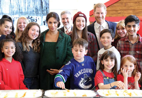 Prince Harry and Meghan, Duke and Duchess of Sussex, pose with young people who demonstrated a Canadian spring tradition of making maple taffy (maple syrup cooled on snow to make sweets) during a Commonwealth Day Youth Event at Canada House on March 11, 2019 in London. The event showcased and celebrated the diverse community of young Canadians living in London and around the U.K.