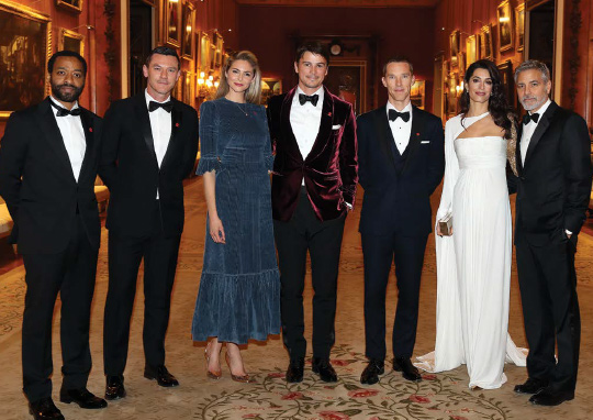 The Prince Of Wales hosts a dinner to celebrate 'The Prince's Trust' on March 12, 2019: (L-R) Actor and director Chiwetel Ejiofor, actor Luke Evans, actress Tamsin Egerton, actor Josh Hartnett, actor Benedict Cumberbatch, Amal and George Clooney attend a dinner to celebrate ‘The Prince's Trust’ at Buckingham Palace in London, England. The Prince of Wales, President, The Prince’s Trust Group hosted a dinner for donors, supporters and ambassadors of Prince’s Trust International.