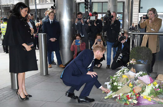 The Duke And Duchess Of Sussex Sign A Book Of Condolence At New Zealand House: Prince Harry and Meghan, the Duke and Duchess of Sussex, arrive at New Zealand House to sign the book of condolence after the recent terror attack which saw at least 50 people killed at a Mosque in Christchurch on March 19, 2019 in London, England.