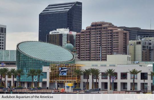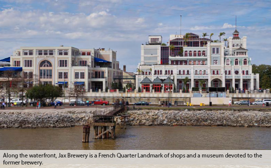 Between the Garden District and the French Quarter a wedge of office buildings make up the Central Business District (CBD) that tapers to a point ending at the Spanish Plaza on the Mississippi River. Surrounded by the Riverwalk Shopping Center, Harrah’s Casino and the Aquarium of the Americas, the Spanish Plaza intersects with three of New Orleans’ most popular neighborhoods: the French Quarter, CBD and the Warehouse/Arts District. A lovely waterfront walk leads from the plaza to Woldenberg Riverfront Park at the edge of the French Quarter where sculptures such as the stark white Monument to the Immigrant, the colorful Holocaust Memorial and the abstract silver Ocean Song speak to the power of public riverside art.