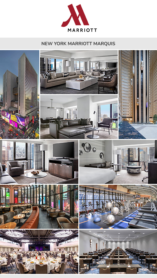 Step into the magic of Manhattan at the New York Marriott Marquis and make memories that will last a lifetime. Our iconic hotel is nestled in Manhattan's Times Square, surrounded by Broadway lights and world-class attractions. Indulge in our redesigned restaurants, featuring bold New York flavors and innovative menus. Unwind in our spacious accommodations equipped with modern amenities and stunning views of Broadway, Times Square, and the Manhattan skyline.