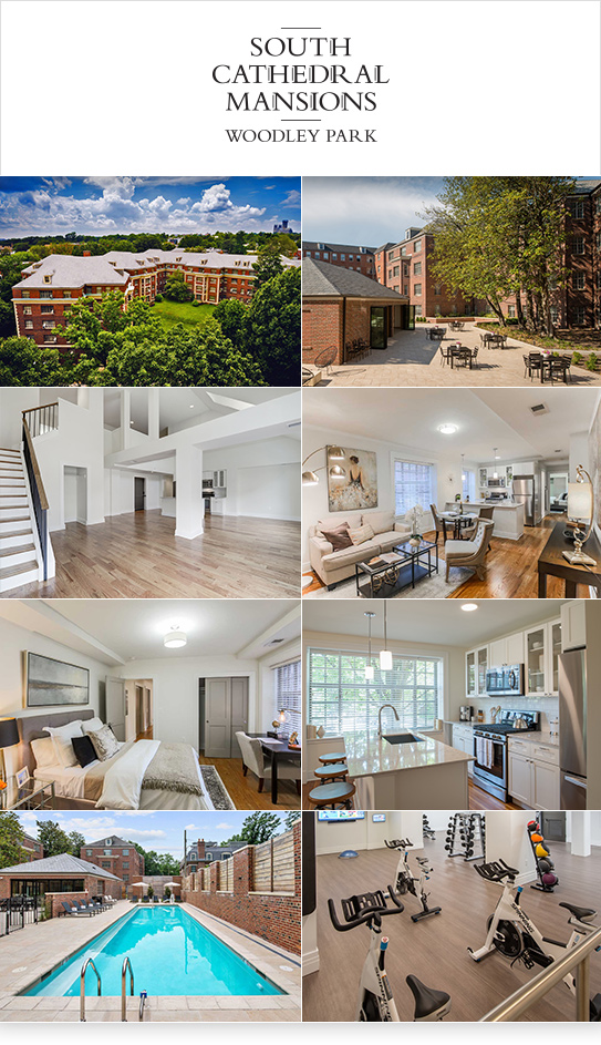 South Cathedral Mansions is nestled at the northwest corner of Cathedral and Connecticut Avenues in the heart of Woodley Park. Originally developed as a streetcar suburb, Woodley Park is a very walkable neighborhood steps away from Woodley Park – Zoo/Adams Morgan Metro station. Surrounded by restaurants, retail and entertainment including the Smithsonian National Zoo, Rock Creek Park, and Uptown Theatre, there are many exciting options to choose from. Grab a bite at a local spot such as Dukes Counter, Open City, Tono Sushi and Macintyre's or travel a few minutes to a variety of grocery stores and markets.